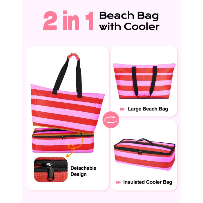 - 【Detachable Cooler Bag】 Upgrade your seaside adventures with our beach bags for women! Featuring a detachable double zipper design, it allows you to easily separate the beach bag and cooler bag. The insulated cooler keeps drinks chilled for hours (add ice packs for extended chill), and the leak-proof liner prevents water from seeping out when ice melts. In addition, it's versatile enough that you can also use it for wet swimsuits and flip-flops.
