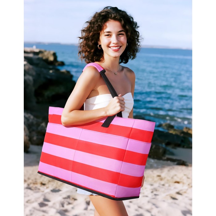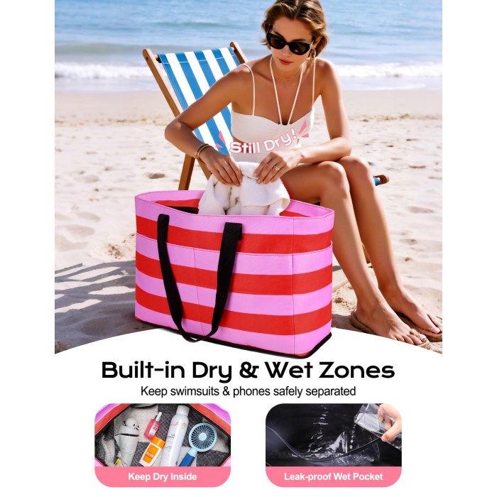 - 【Stylish and Versatile】 These timeless striped beach bags waterproof sandproof are your ultimate companion for every adventure, whether it's the beach, gym, swim pool, boat, or short trip. Combining practicality with fashionable design, it is not just a bag—it's a women beach fashion. It's perfect for women, baby, kids, or family.