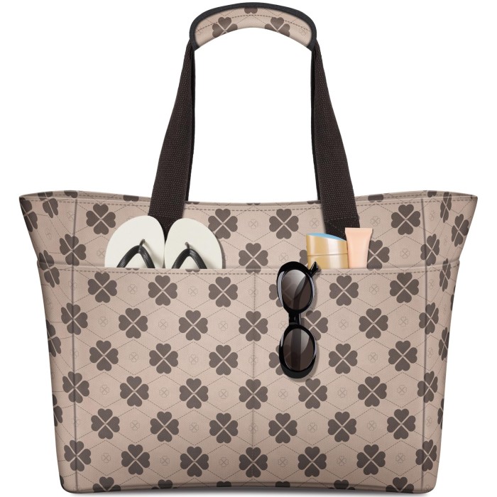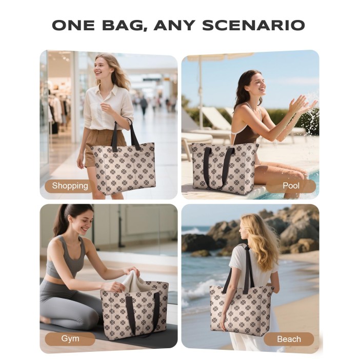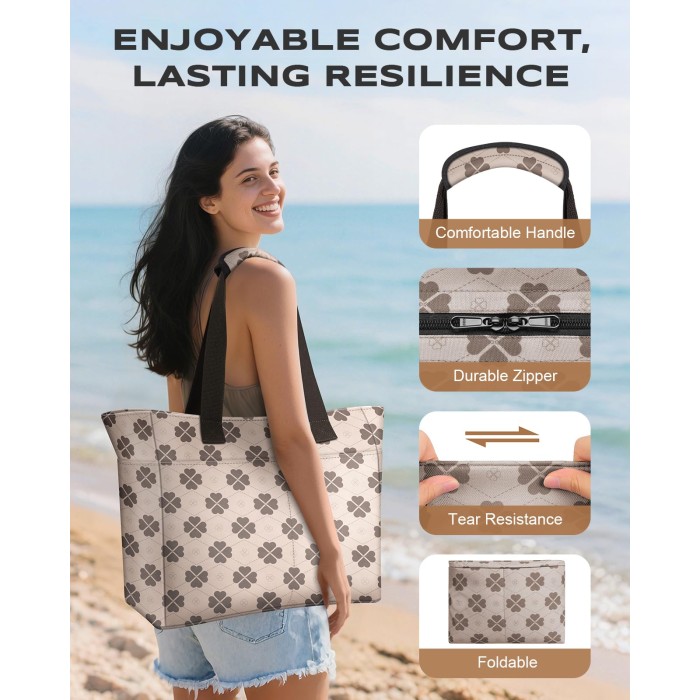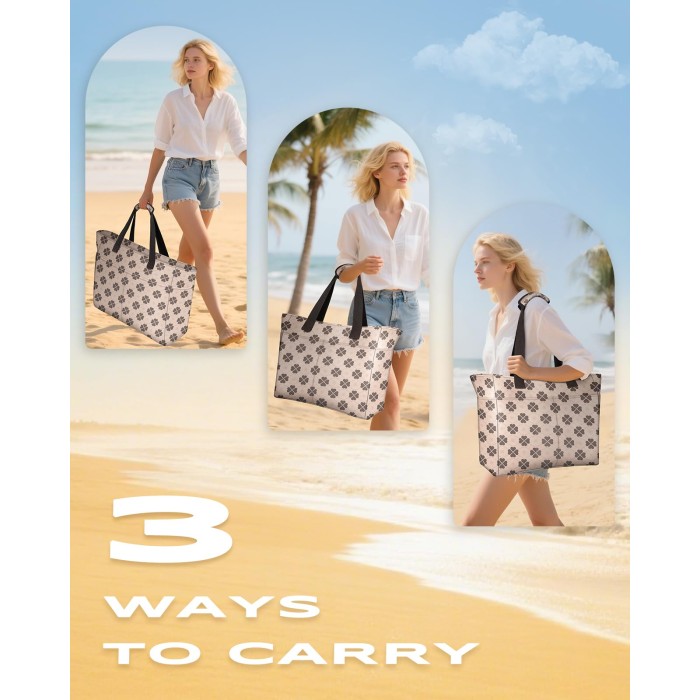 【Stylish and Versatile】 Rock the iconic four-leaf clover pattern from beach days to city streets! Perfect as a pool bag, shopping bag, travel bag, or fitness bag, the beach tote bag masters pool trips, park picnics, weekend getaways, and daily commutes. Weighing just 0.56lbs, it can be fold compactly, tucking into backpacks or suitcases. Wherever life takes you, chic versatility delivers.